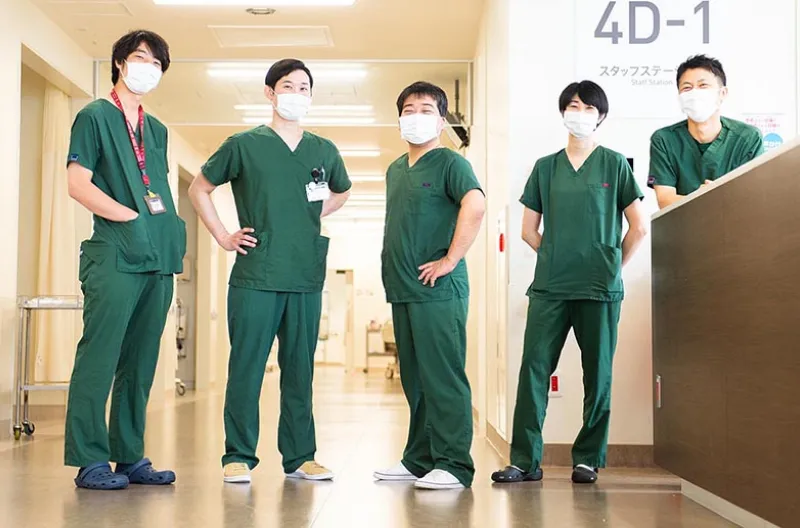 当集中治療センターではSemi-closed制をとっており、主科の医師が主に原疾患の治療を、麻酔科ICU専従医が呼吸循環を中心とした全身管理を担当しています。主科、リハビリ科、麻酔科の医師のみでなく、看護師、臨床工学技士、理学療法士、薬剤師や管理栄養士など、複数の職種によるチームで重症患者の治療に当たっています。